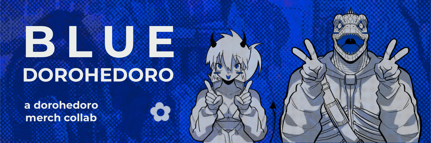 Blue Dorohedoro is an unofficial Dorohedoro merch collaboration filled with an array of goodies in various shades of blue.