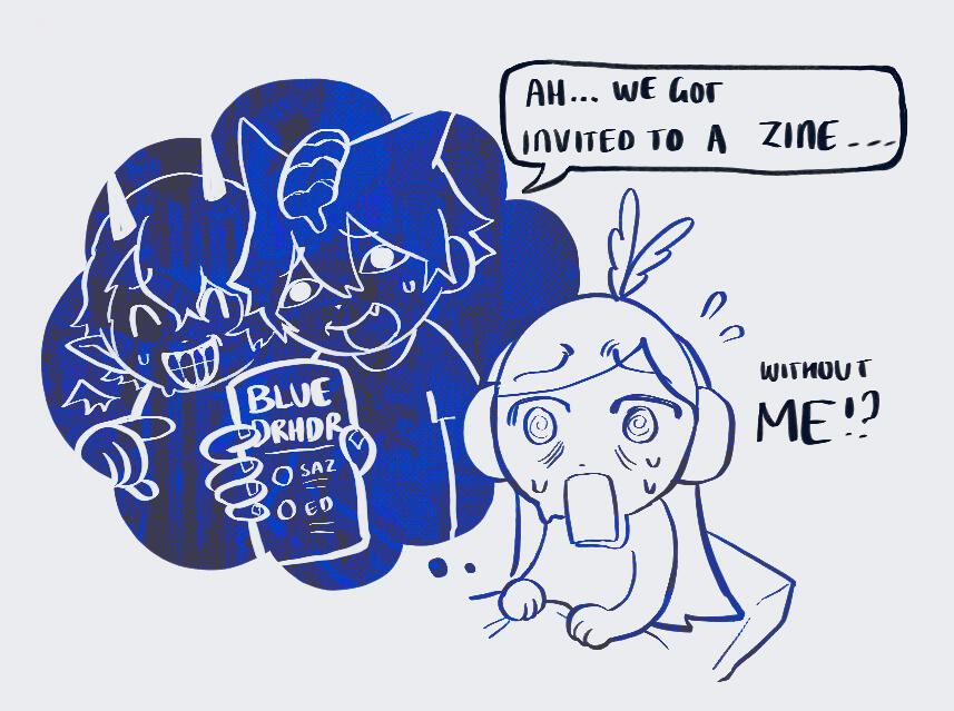 On the 12th of September, 2023, Jettie woke up from a terrifying nightmare in which a zine called Blue Dorohedoro announced their contributors. Their friends Saz AND Ed were invited to participate, but not them...